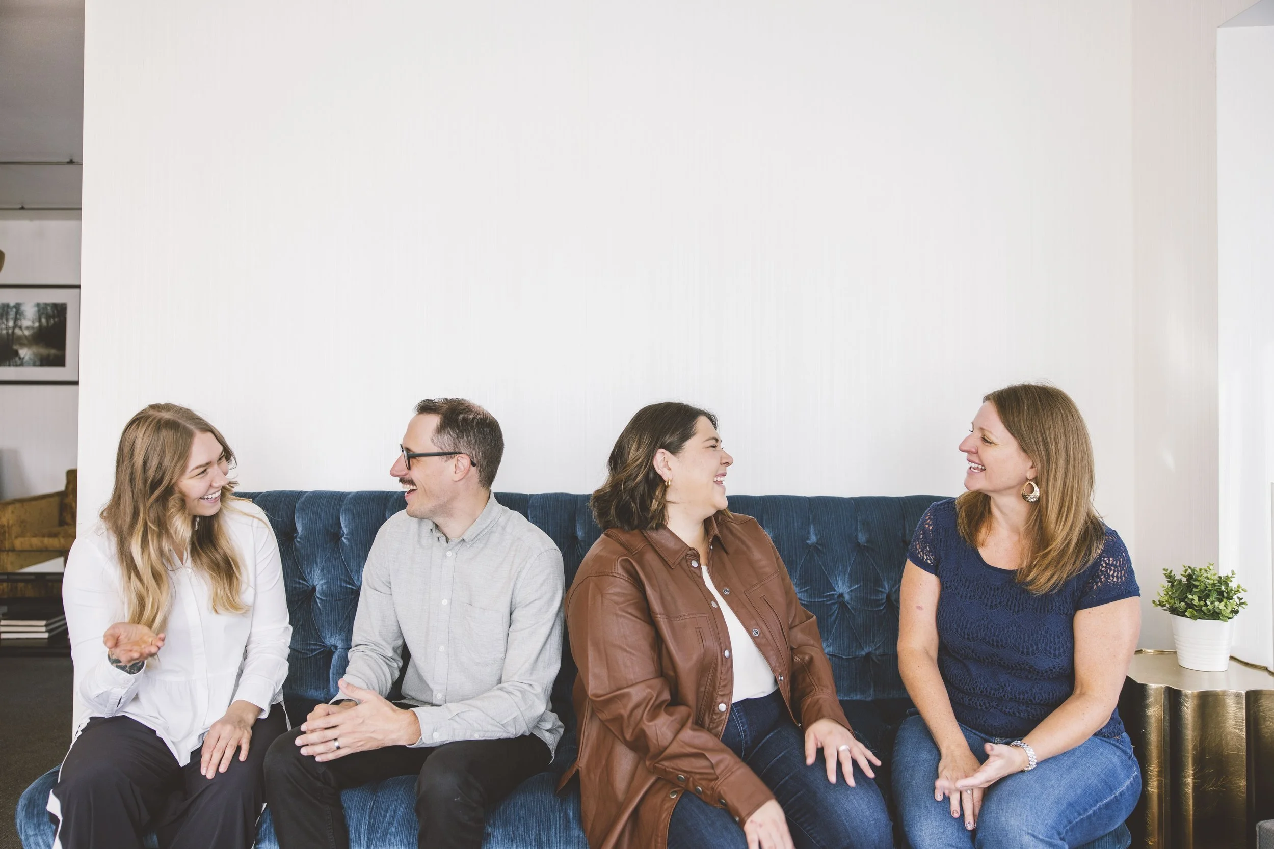 Team photos are more than just pictures; they represent the essence of your company culture. When employees see themselves as a part of a vibrant, united team, they are more likely to feel motivated and dedicated to the company's goals. A sense of belonging fosters a positive work environment, which, in turn, enhances productivity and creativity. When employees feel connected to their colleagues, they are more likely to collaborate effectively. Every single time I shoot for Middle of Six someone makes a comment about how great the exercise is for team building! I mean, how can it not when you’re asked to get up close and personal and start acting with your coworkers? There is always some laughter involved and a stronger bond is formed. In addition, you get to showcase that strong company culture to your audience with the resulting pictures and show your personality through that.