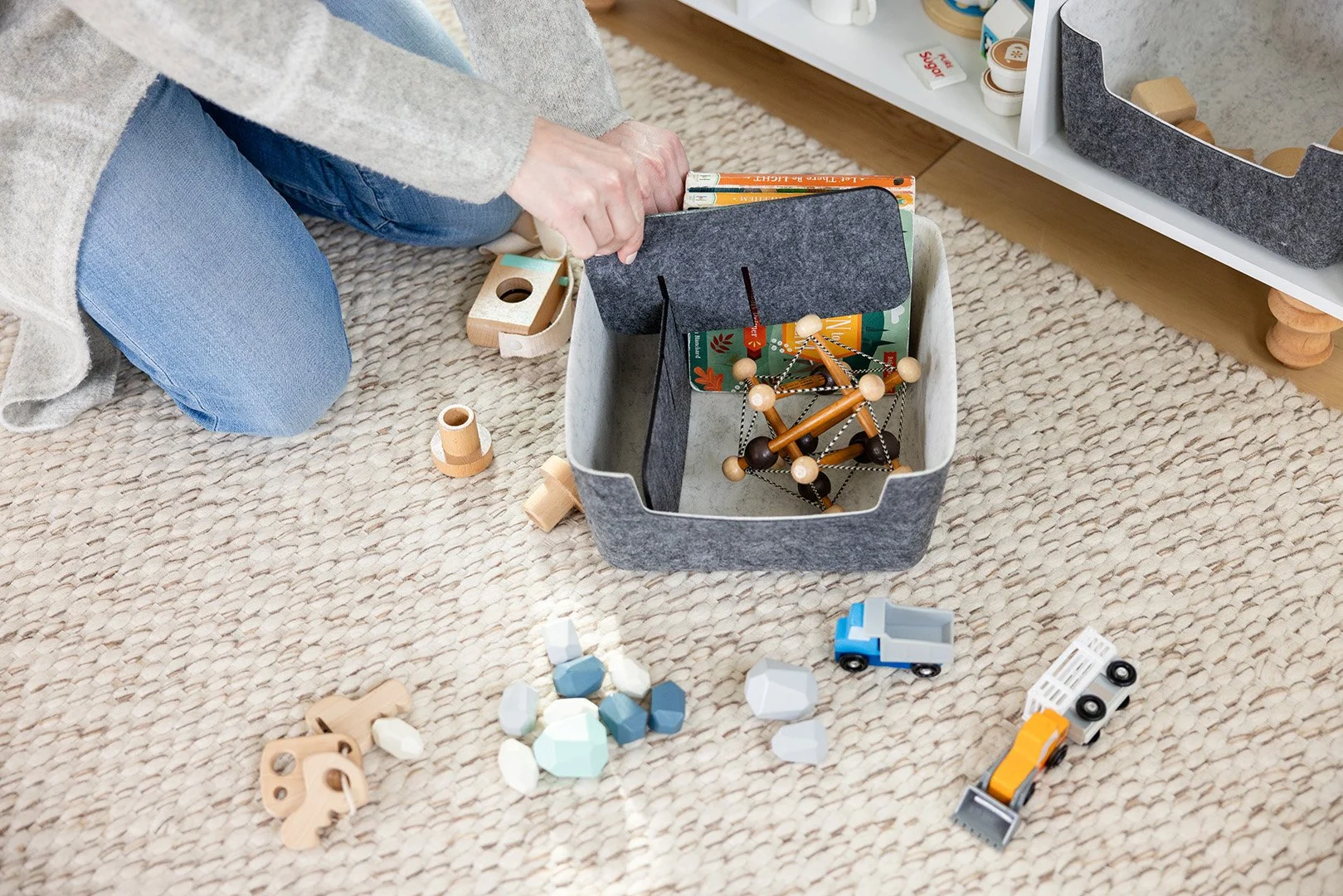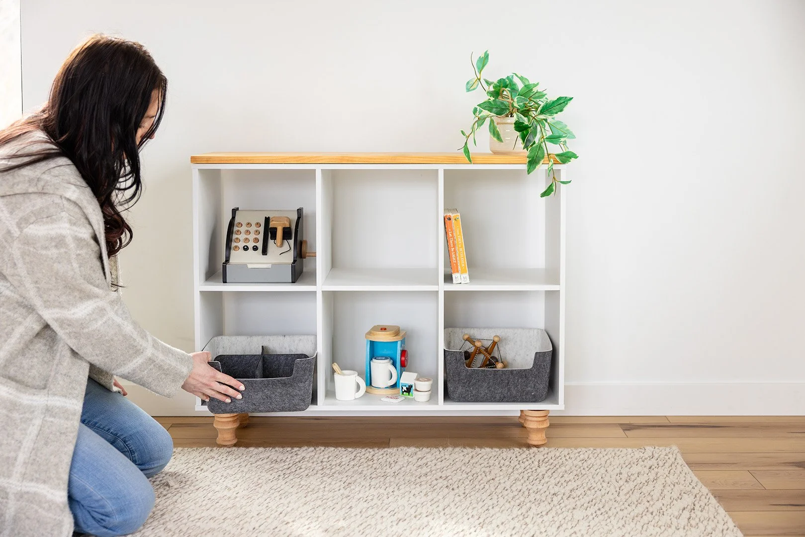 The objective for this shoot was to create a library of playful imagery for their new line of felt cubby storage bin organizers. I focused on showcasing these bins in a variety of realistic usage situations to help customers visualize them in their own homes. The final gallery needed to feel playful and approachable, highlighting the versatility of the products across different rooms and functions.