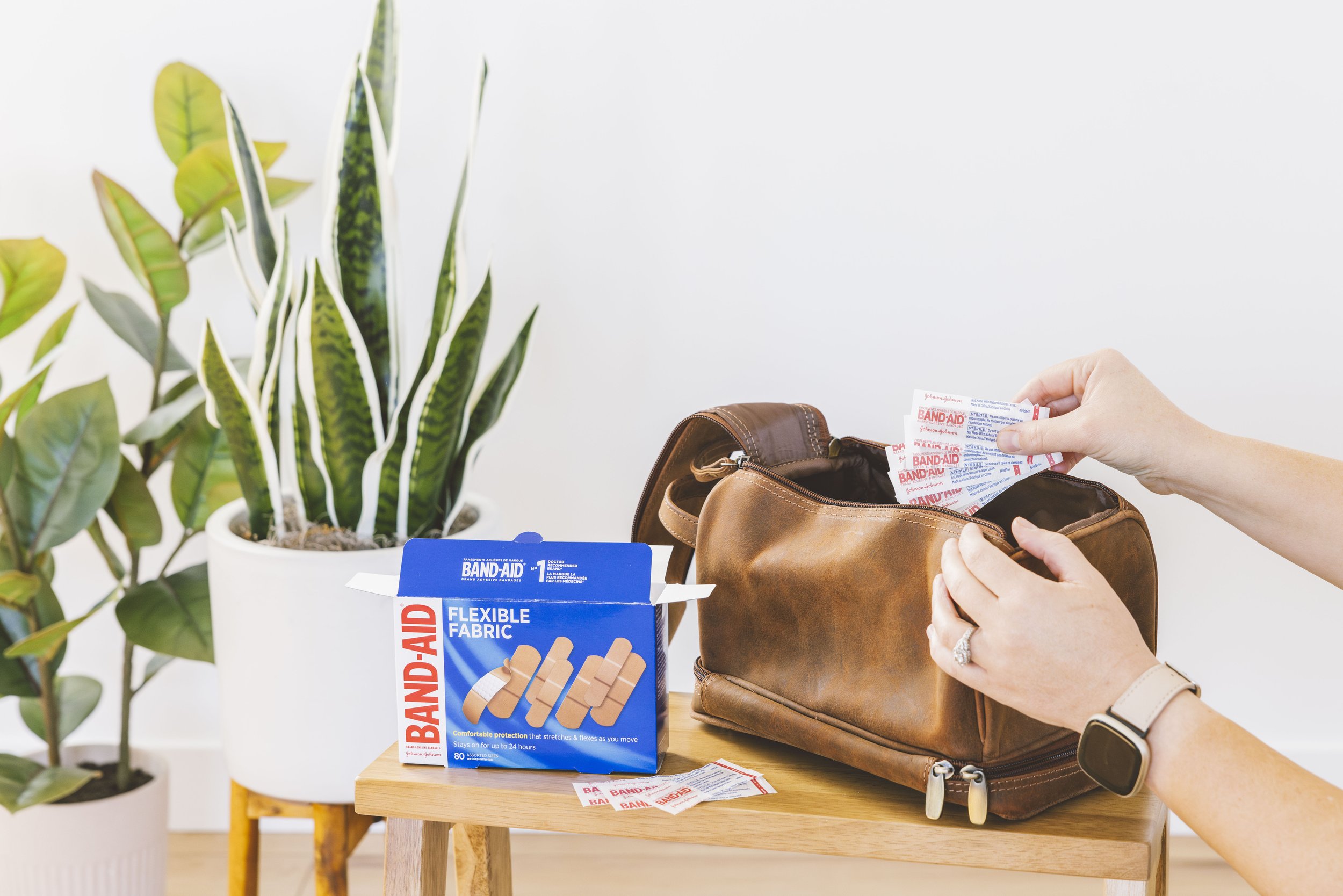 The objective was to create a set of compelling lifestyle images that showcase the core usage and reliability of the Band-Aid Flexible Fabric product. The concept required capturing professional, yet authentic, real-life scenarios of people applying, using, packing, and holding Band-Aids. The emphasis was on the theme of a family interacting with the Band-Aid brand. Key imagery included close-up shots of the product being applied to minor wounds across various indoor and outdoor settings, and the product being packed into a bag for on-the-go scenarios.